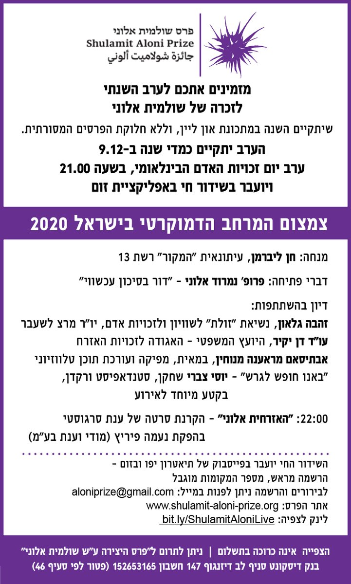 Anat Saragusti No Twitter חסר לכם הקול הצלול של שלומית אלוני העמדה הישירה רוצים לשמוע את האושייה Zehavagalon המומחה מספר 1 לדמוקרטיה עו ד דן יקיר והבימאית אבתיסאם מרענה בהנחיית Liberwomen ובונוס Yossizabari